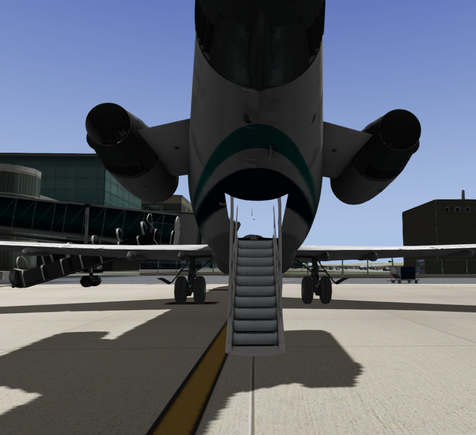 The modelling is good, however as with the 732 and original B727, I do wish there was implementation of the rear air stairs, as they are one of the core features of the 727. The stairs are implemented, although as there is no cabin, they simply have hollow walls. The gear and flaps have been modelled brilliantly.