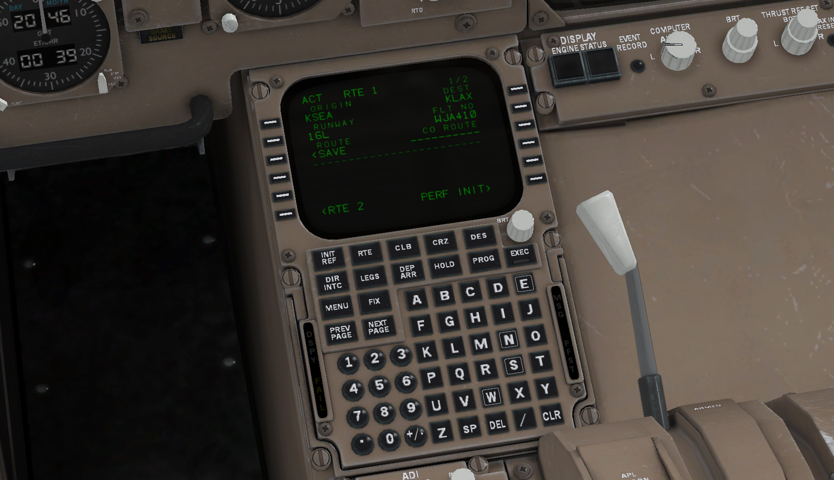 For our flight, we’re going to do a short haul from Seattle to Los Angeles. We’re expecting the aircraft to be at the gate for a short turnaround and then off to LAX. Luckily, the inbound crew left the displays running for us. Here’s what I saw when I entered the flight deck: