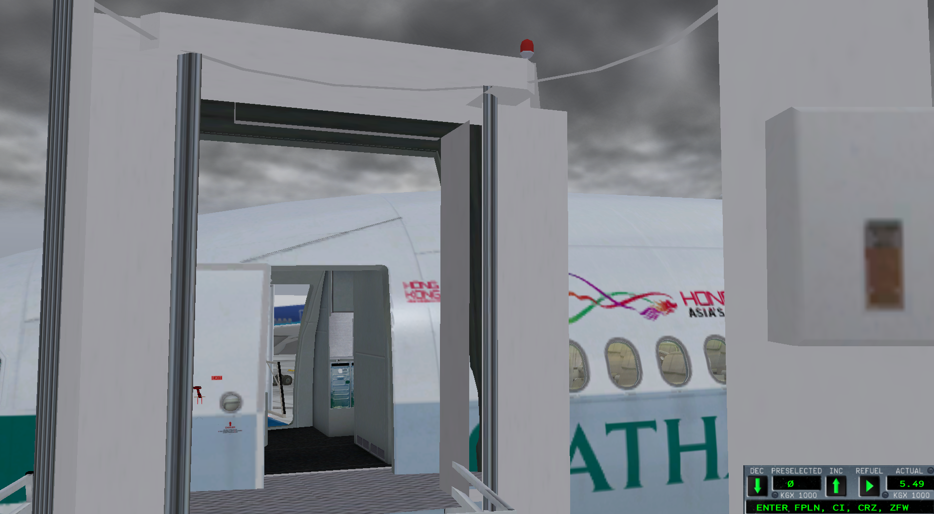 Note that the service vehicles will automatically open & close your aircraft doors. You do not have to touch the door menu – very realistic, as it’s the cabin crew + ground crew doing all the opening/closing of the doors. Pilots just monitor through the ECAM page.