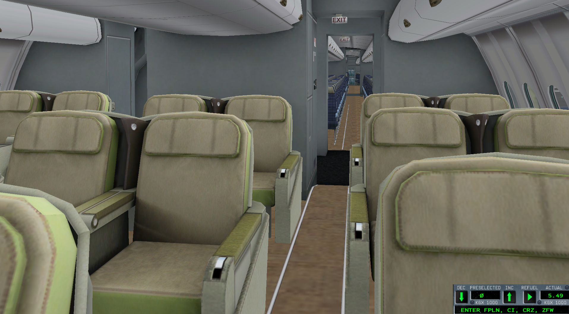 Ok first things first, let’s do a safety inspection check in the cabin. Here, you can see JARDesign has beautifully modelled the 2 class cabin, with Premium and Economy class. Safety inspection, check! Let’s head into the cockpit.