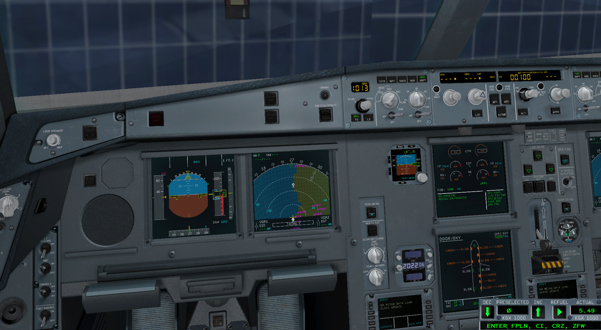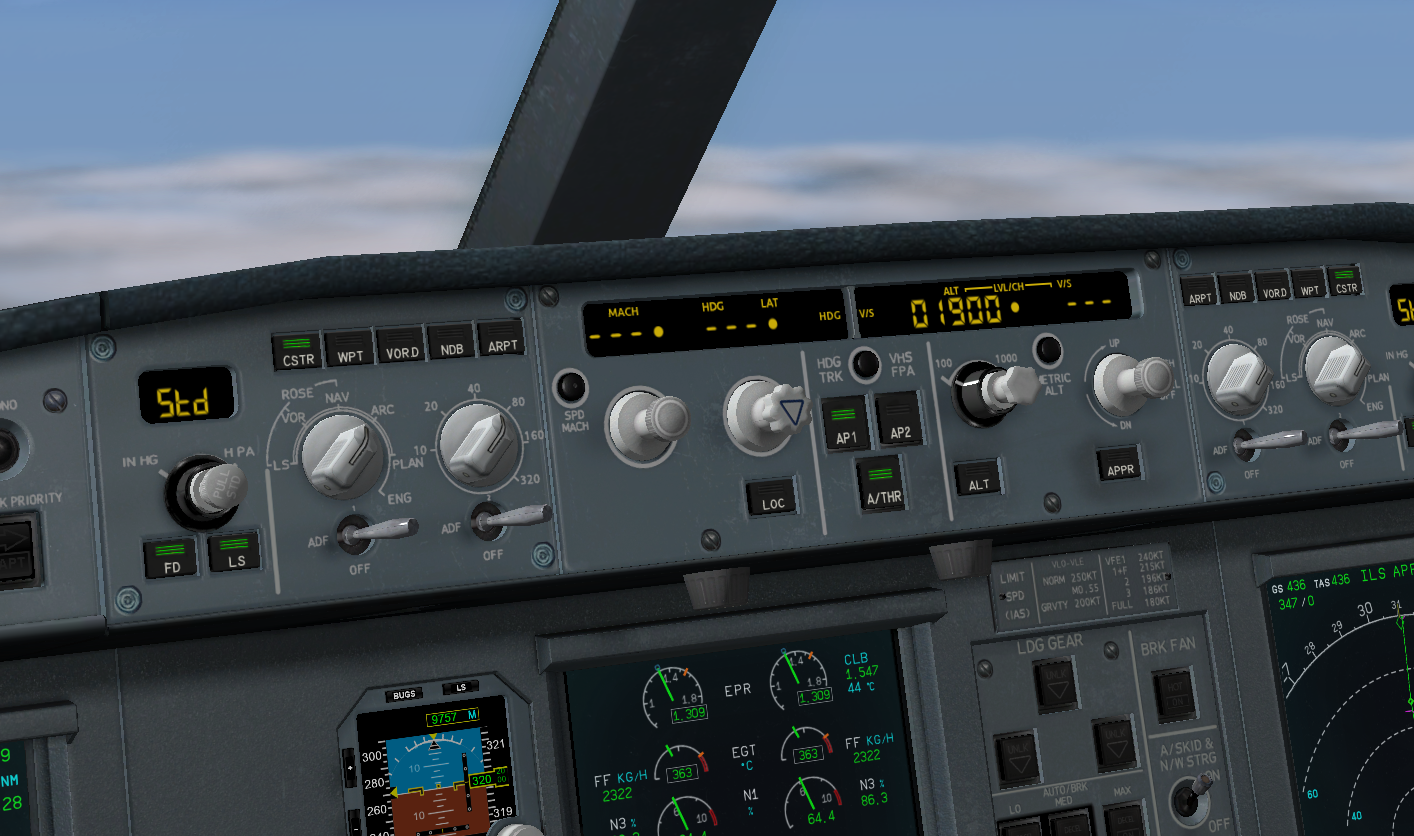 Here's one item that I found to be a bug, or in fact realistic and I've been mis-led by other inaccurate Airbus addons in the past: the FCU only allows you to select either airports, VOR, or constraints – unlike the Boeings, you can’t have all on at once. Again, I'm not sure if this is a bug, or is accurate, but I've just been mis-led by other addons. However, it doesn’t affect my flight at all because I only stick airports on anyways.