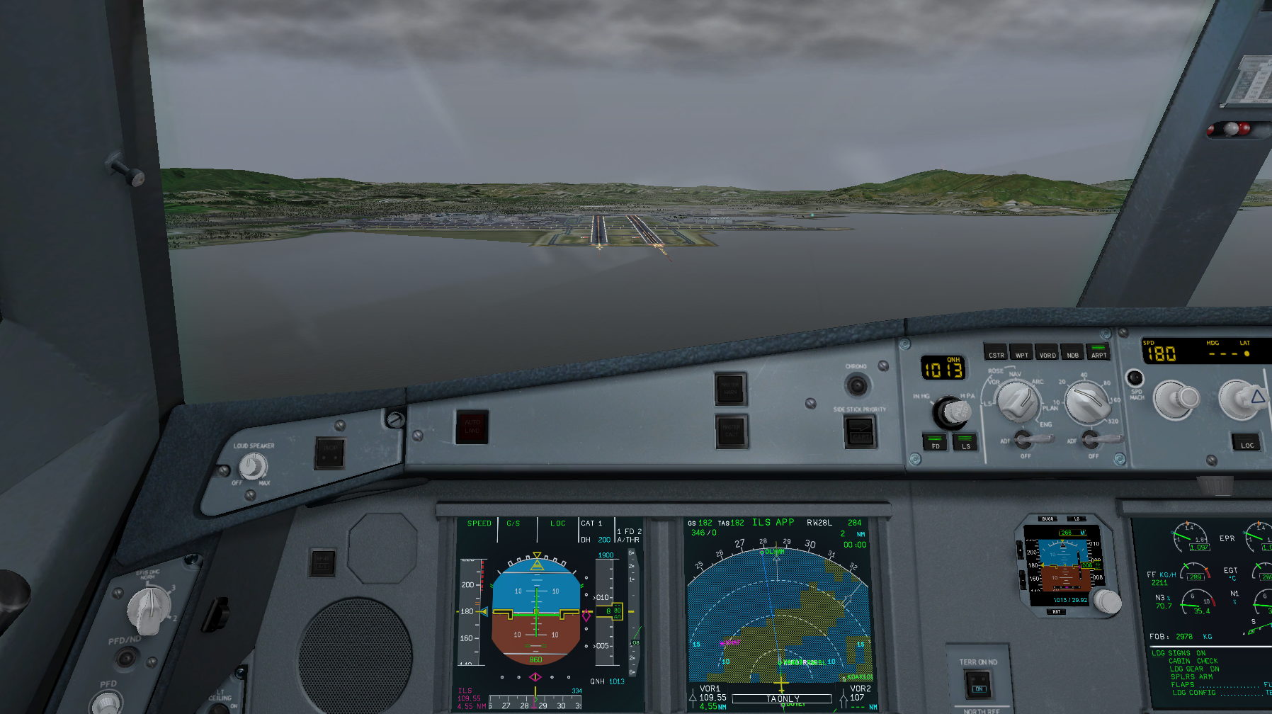 As I mentioned earlier, it is an absolute joy to hand fly this aircraft. I disconnected shortly after glide slope was captured and flew the approach onto runway 28R. The aircraft behaves perfectly to small sidestick movement. As my left hand does small corrections to pitch and bank with my sidestick (yes I actually fly Airbus with my left hand on the joystick), the fly-by-wire system reacts with precision as I make these corrections.