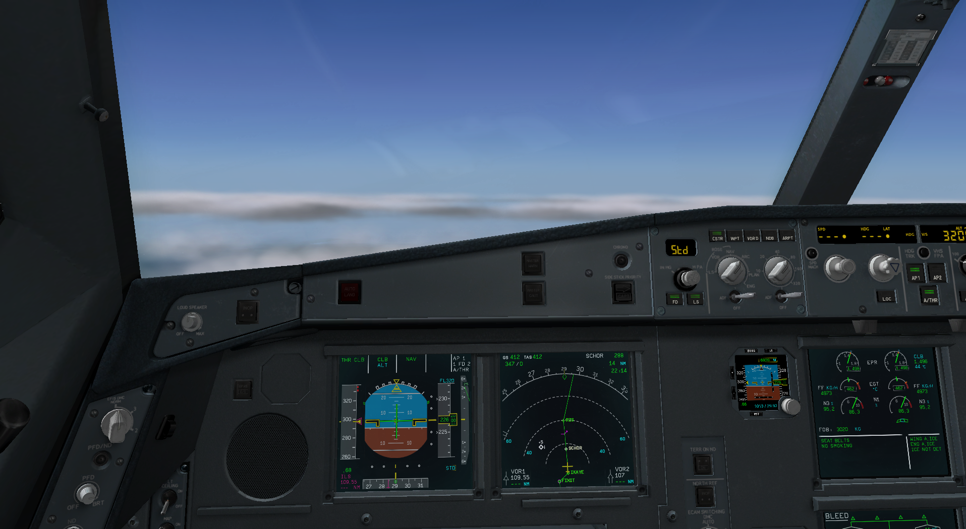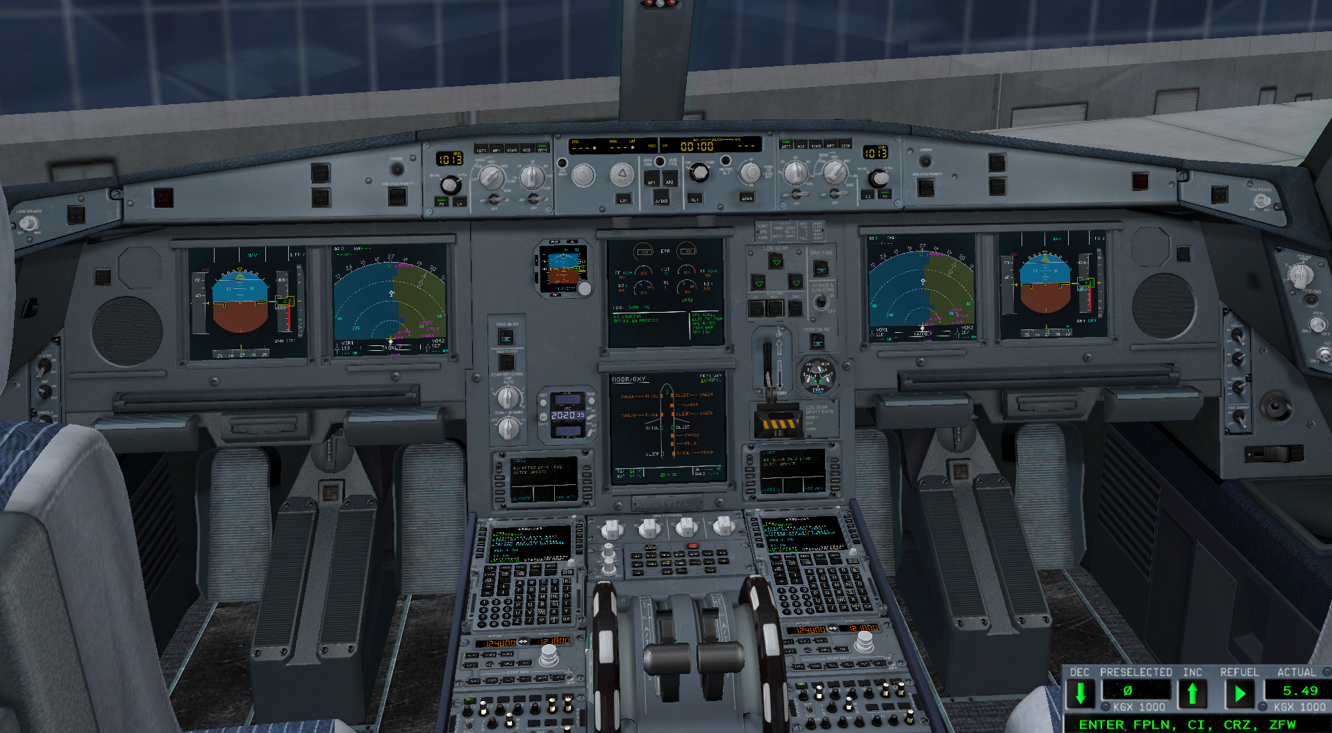And the cockpit looks good as well; all preflight checks and duties complete, just have to wait for boarding to complete and we can pushback & start our engines.